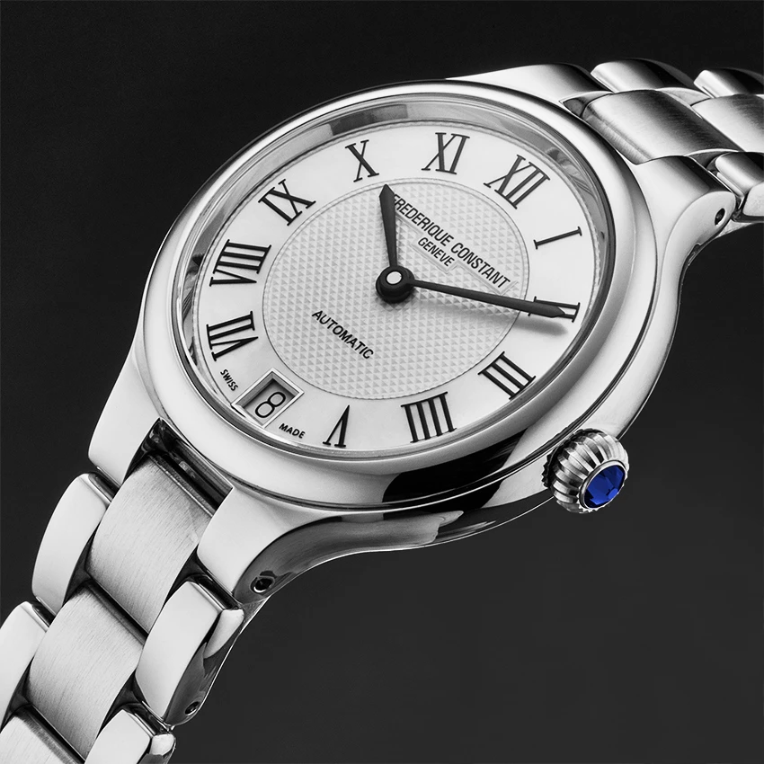 Frederique Constant is known for delicate rounded cases that require many hours of hand polishing.